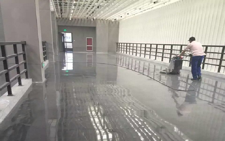 6、全面拋光:用專業(yè)的打磨機配300目環(huán)氧樹脂磨碟進行全面打磨2—3遍(可以用清水進行濕潤處理后打磨或直接帶水水磨),對整體基面進行全面拋光。(直至地面手感光滑并帶有少量光澤為止)。